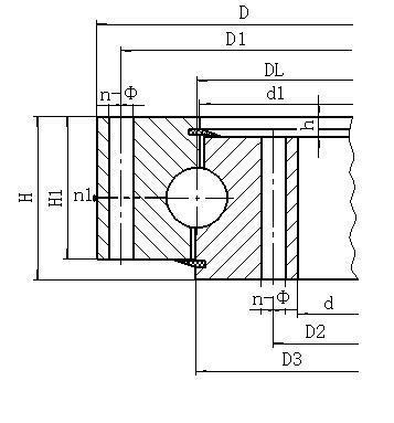 單排四點(diǎn)接觸球式回轉(zhuǎn)支承由兩個座圈組成,結(jié)構(gòu)緊湊,重量輕,鋼球與圓弧滾道四點(diǎn)接觸,能同時承受軸向力,徑向力和傾翻力矩,回轉(zhuǎn)式輸送機(jī),焊接操作機(jī),中小型起重機(jī)和挖掘機(jī)等工程機(jī)械均可選用。