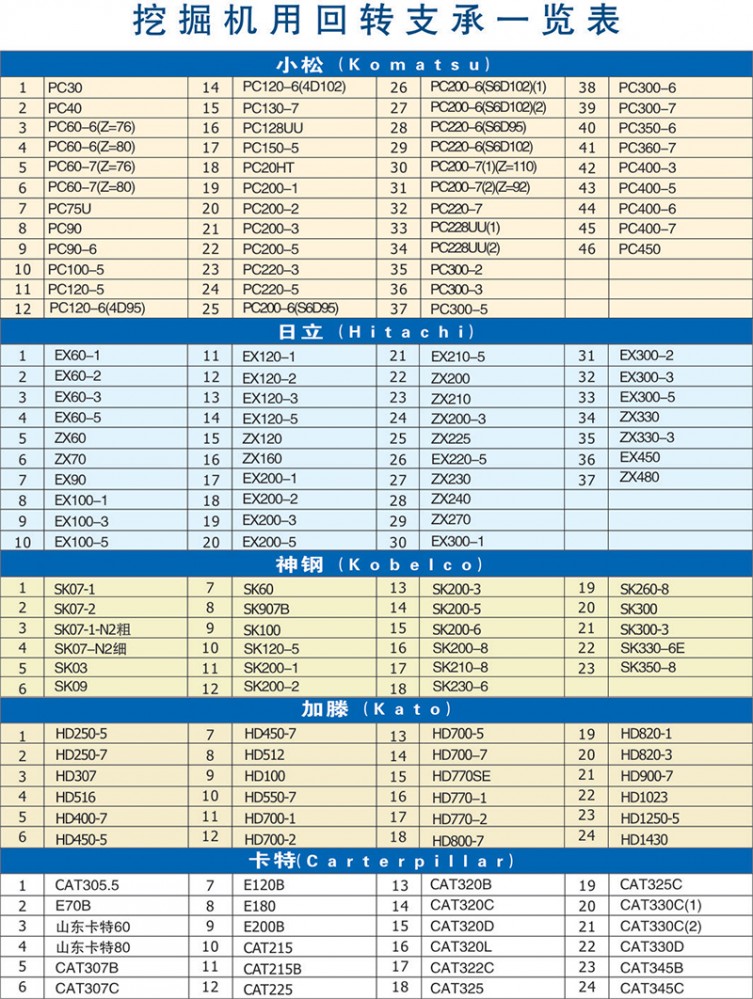 各大品牌挖掘機(jī)回轉(zhuǎn)支...